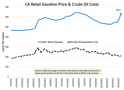 EXPLANATION FOR UNPRECEDENTED SPIKE: The California Energy Commission (CEC) has sent a letter to industry executives demanding immediate and comprehensive explanations for this inexplicable, unprecedented spike in gas prices within the past 10 days. This explanation must address the fact that there haven’t been any new state costs or regulations, that planned and unplanned maintenance typically does not result in large increases like this, and crude oil prices are down.